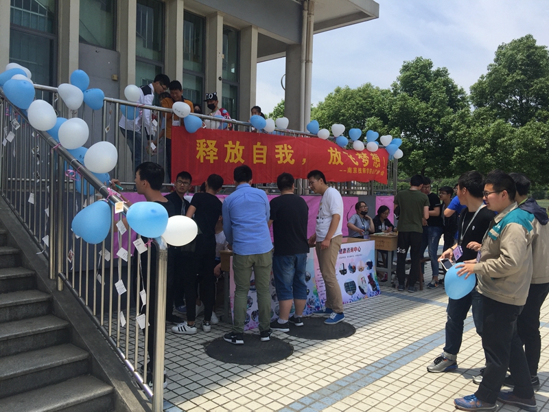 5月24日南京技师学院广场心理咨询活动一食堂小广场举行,本次活动的主题为:释放自我,放飞梦想。