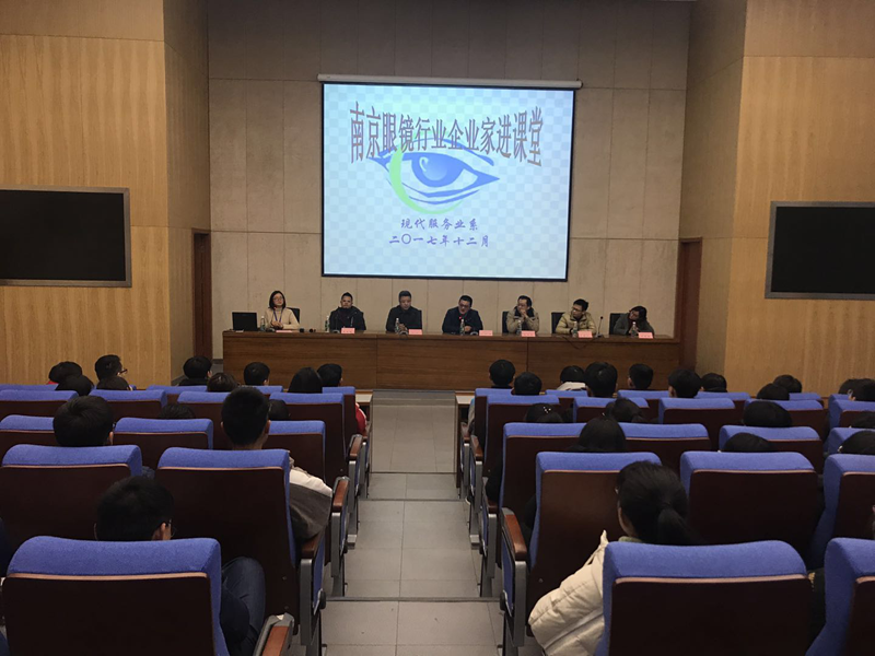 为使眼视光专业学生对专业方向和未来规划有更加清晰的认识,2017年12月20日下午, 南京眼镜行业企业家走进该专业学生课堂开展宣讲活动,体现了校企深度对接,共谋学生未来职业规划。本次活动由江苏金陵职业技术学校校长王云、南京明亮眼镜有限公司董事长肖绍静及南京苏雅眼镜有限公司总经理蔡晓海主讲,南京技师学院现代服务业系主任徐建华、金陵职业技术学校教研室主任徐德军参加了活动,眼视光专业老师季雪负责主持。