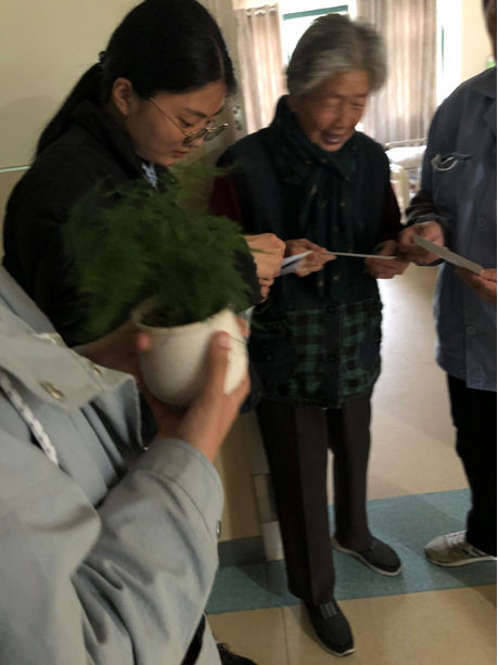 2018年3月16日、4月4日下午,心理协会志愿者部的同学们利用周五下午的课余时间,举行了一系列以“关爱老人,服务社会”为主题的活动。周五午饭后,同学们在校门口集合,前往南京国悦颐养院丁家庄分院为各位老人送爱心,送温暖。