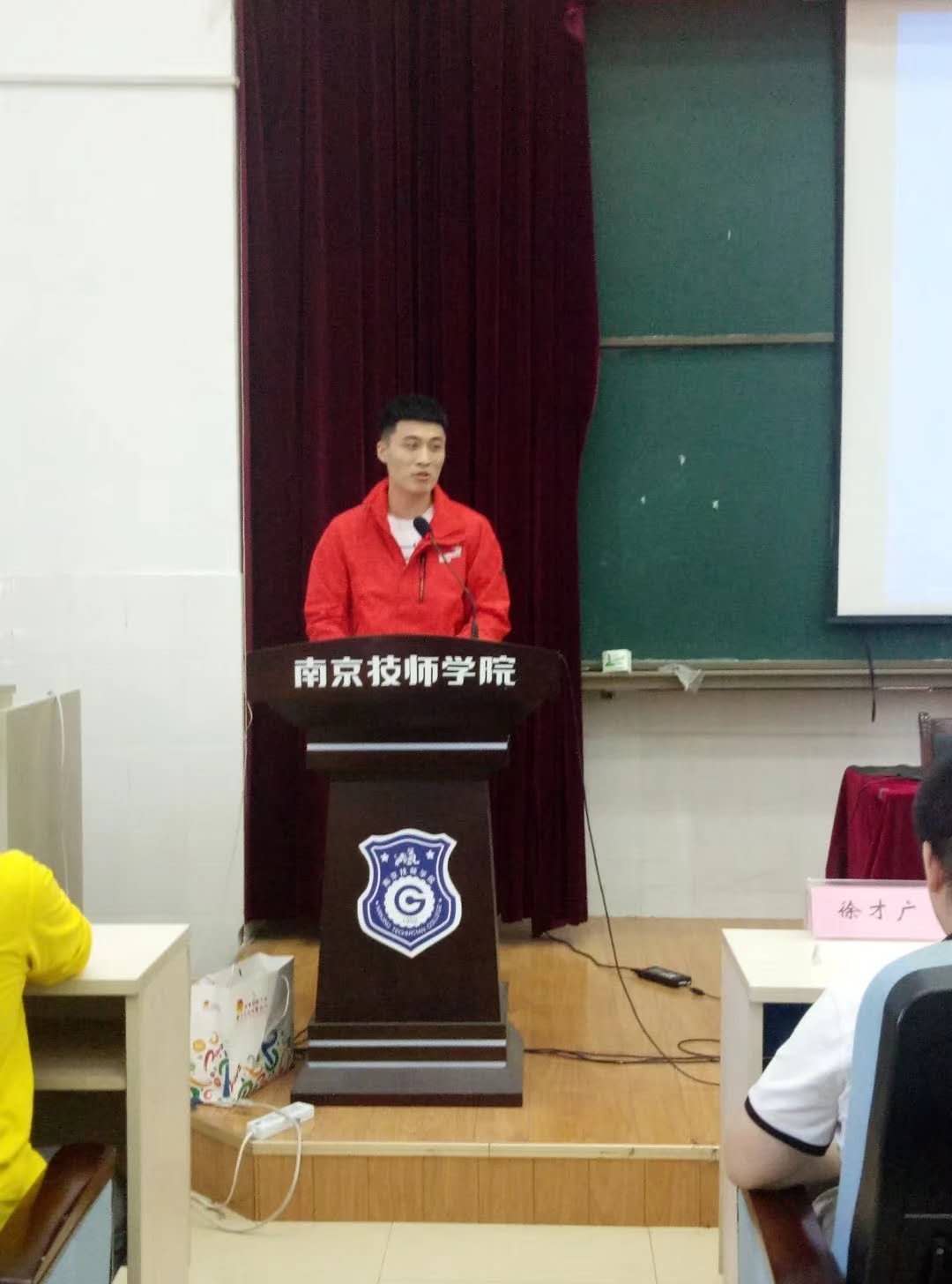 我院移动机器人大赛队教练、世界技能大赛国家队教练徐才广老师就世界技能大赛赛事情况、大赛基地情况及我院参赛选手及获奖情况进行发言。我院第44届技能大赛参赛选手、世界技能大赛江苏省教练、国家队队员刘人豪介绍了参赛选手的训练情况。接着我院参赛选手、世界技能大赛全国机械行业选拔赛第一名选手代表张林淇同学介绍训练的心得。