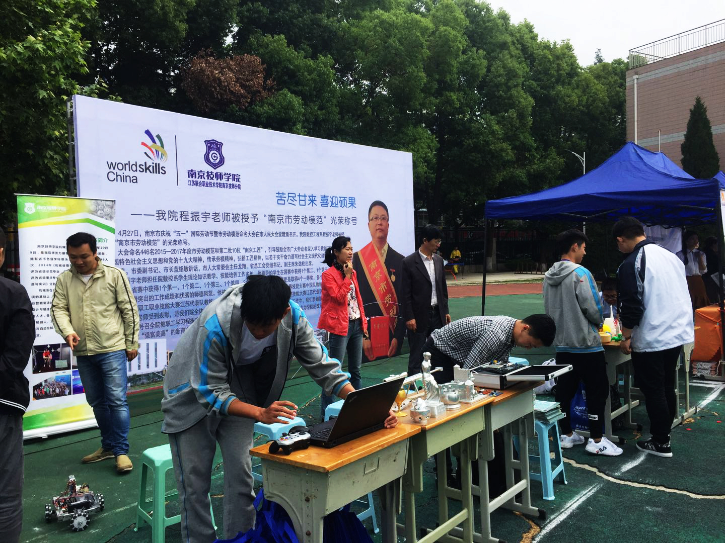 在活动周现场,我院展示了3D打印、无人机、移动机器人等实训实验设备及部分学生作品。移动机器人现场表演了定点抓放斯诺克球,吸引了许多领导和学生驻足参观。我院还为参观者提供手机贴膜、钥匙装配、眼镜清洗等免费服务,充分展现了我院办学成果和学生技能风采。
