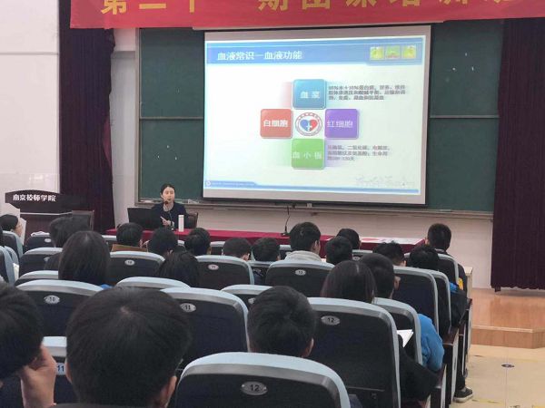 11月19日,我院邀请江苏省血液中心胡文佳技师为全院近三百名团学干部做了无偿献血公益讲座,传授了许多血液方面的知识,纠正了很多认识上的误区。
