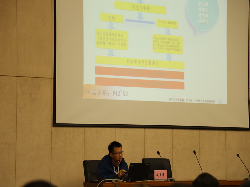 会上,学院六个系相关领导分别就学生的常规管理、学籍、证件、奖助学金、党团、宿舍、学杂费等工作进行了详细全面地阐述和讲解,针对学生管理工作方面存在的问题和困难作了交流培训,要求班主任积极学习和落实《学生工作流程管理规定》,同时结合实际,敢于创新,探索方法,做好我院学生管理工作。
