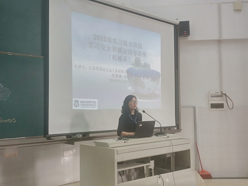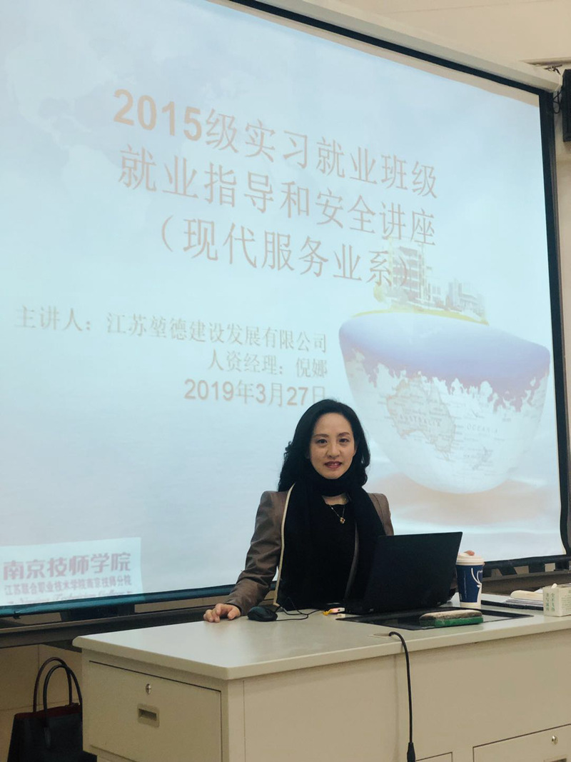 讲座中,江苏堃德建设发展有限公司人力资源经理倪娜、江宁就管中心主任袁建祥、南京康尼机电股份有限公司人力资源部主管徐康、南京天加环境科技有限公司人力资源姜黎平、博世汽车部件(南京)有限公司培训中心芮红艳和江苏苏美达五金工具有限公司人事经理经艳燕6位主讲专家为15级即将下厂实习和就业的学生介绍了近几年就业所面临的严峻形势,指出了当前毕业生所面临的就业难问题,对就业过程中的常见问题作出解答,在就业方向选择、专业与职业之间的矛盾等方面给学生做了阐述和指导,使学生对当前的就业形势有了一个清醒的认识。