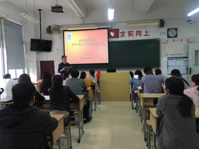 2019年10月11日,南京技师学院举行新生班主任心理专题会议。学院学工处武剑刚处长、心理咨询王雨静老师、各系相关领导以及全体新生班主任参加了此次会议。