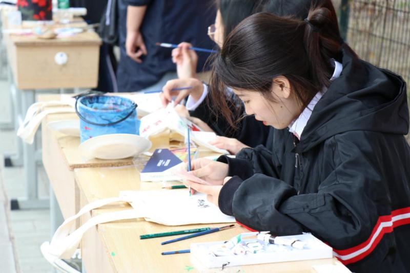 本届师生艺术作品展开展了一系列有意义的文化活动。鼓励学生利用颜料和画笔在为大家提供的帆布包、石头等环保材料上绘画,充分展现个性和创意。增加了师生艺术作品展的影响力,丰富了校园文化生活,营造了浓厚的校园艺术氛围。让更多的同学接触了解了艺术文化的魅力,激发了当代学生的创新理念,展现了计算机系同学对艺术与潮流文化的热爱以及学生的专业风采。