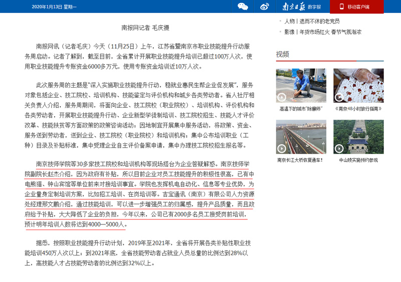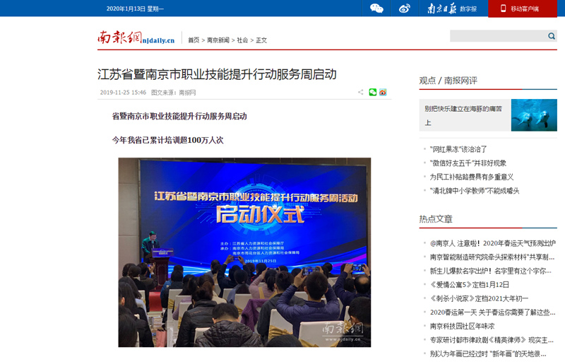 《南京日报数字报》—江苏省暨南京市职业技能提升行动服务周启动 赵杰副院长接受记者采访