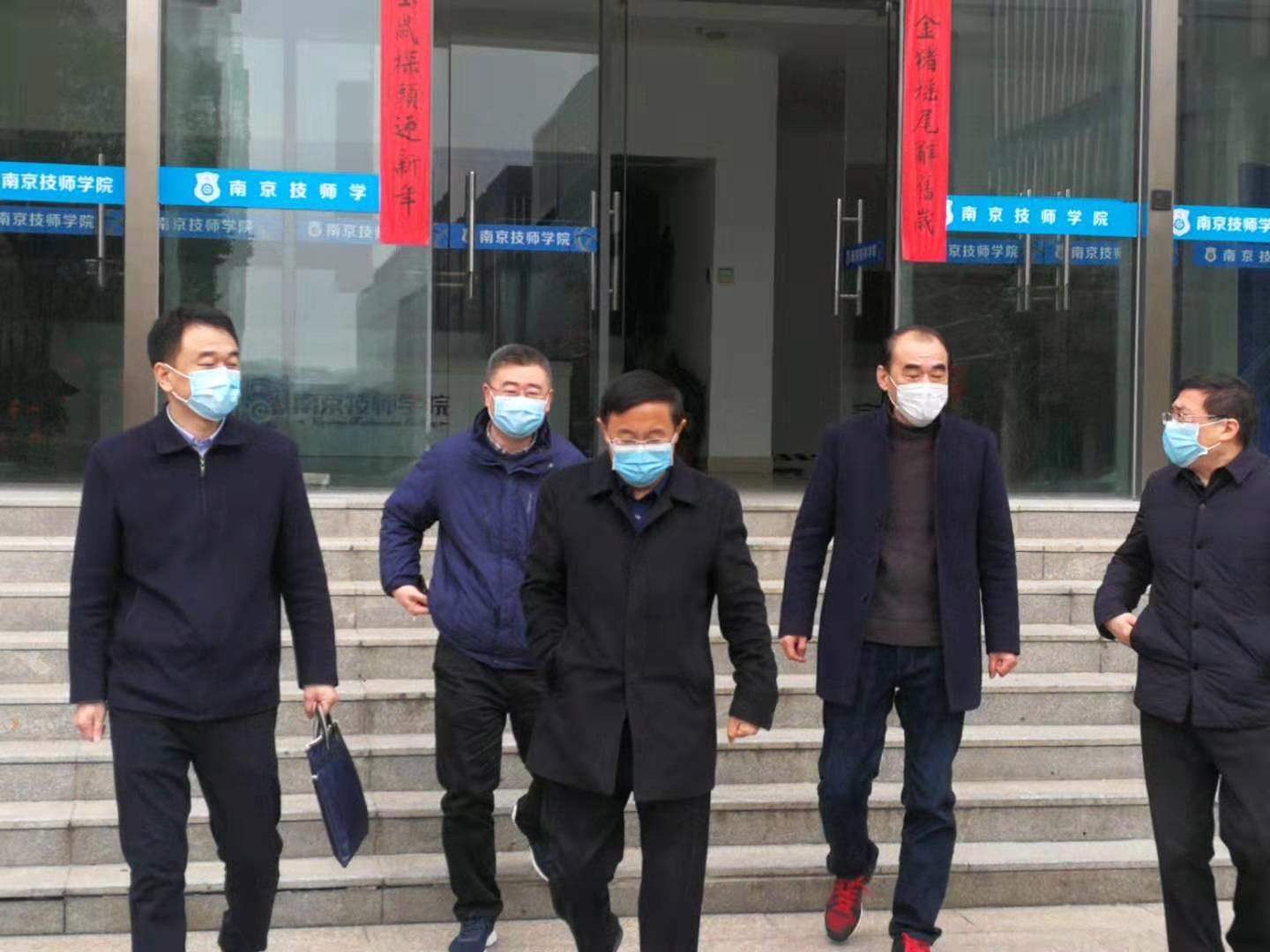 2月5日上午,江苏省人社厅副厅长朱从明带领职建处同志按“四不两直”工作法,来到南京技师学院督查指导新型冠状病毒感染肺炎疫情防控工作。在院值班的院长侯放、副院长金卫卫等同志陪同。