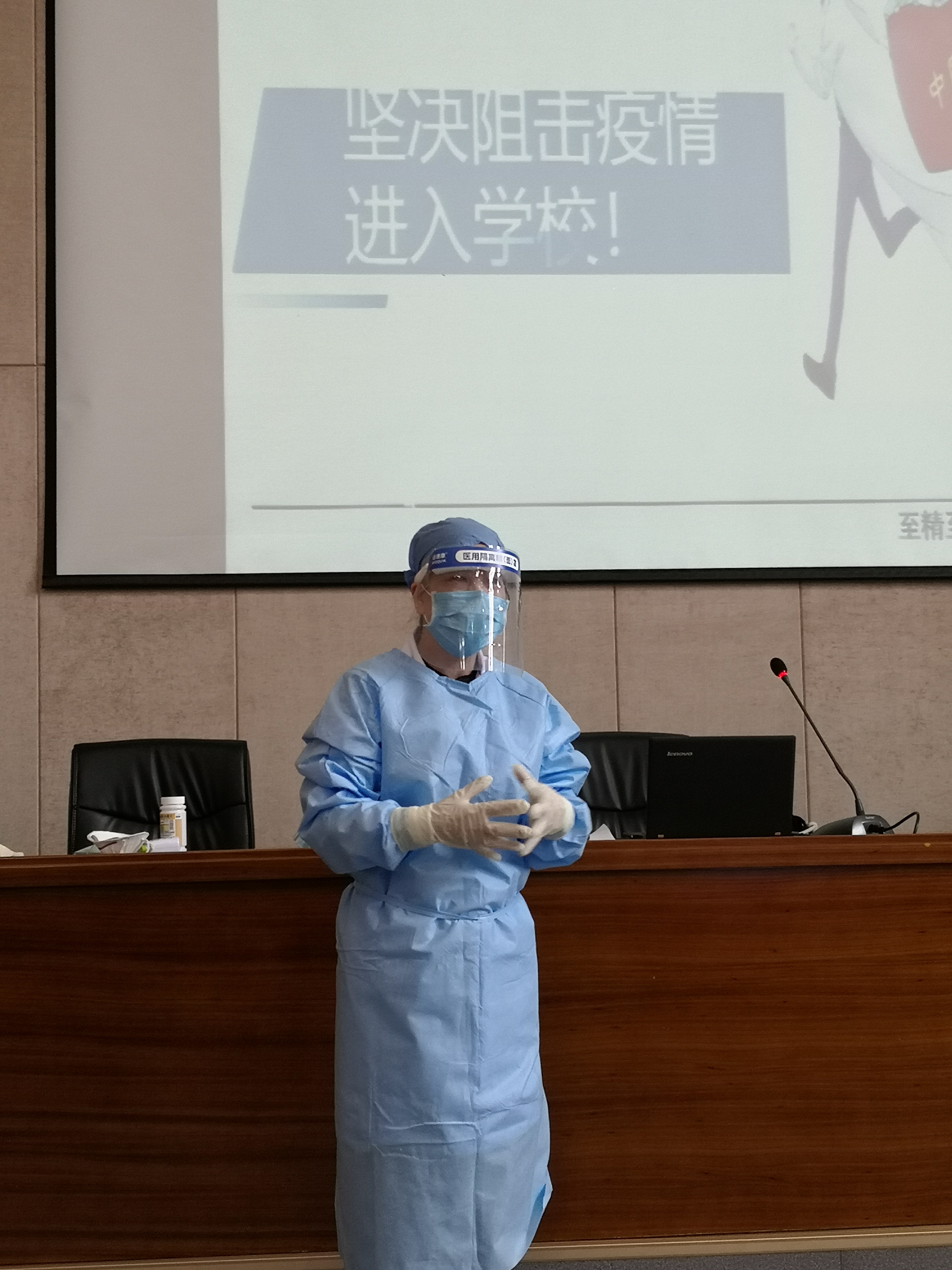 培训讲授了传染病的相关知识和三级预防标准,围绕开学前准备、开学后具体措施、疑似症状应急处置方面,提出要依法防控、精准施策、科学防控。培训专家还用口诀、图示和现场演示等方法详细讲解了7步洗手法、各类口罩的佩戴方法、体温测量的方法、教室宿舍等环境的消毒方法、隔离衣和防护服的穿戴方法、发热学生应急处置、隔离点管理等,培训丰富实用,为我院疫情防控工作提供了更好的工作思路和更有效的工作方法。