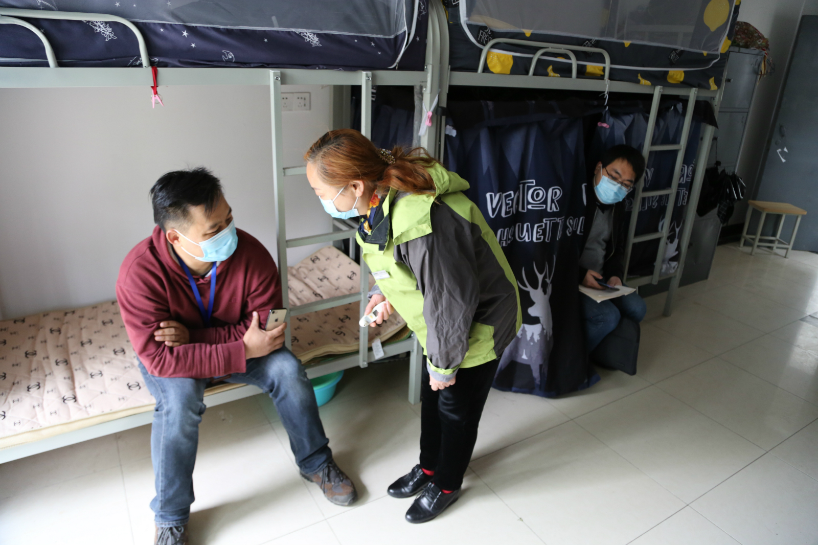 物管阿姨询问发热学生情况