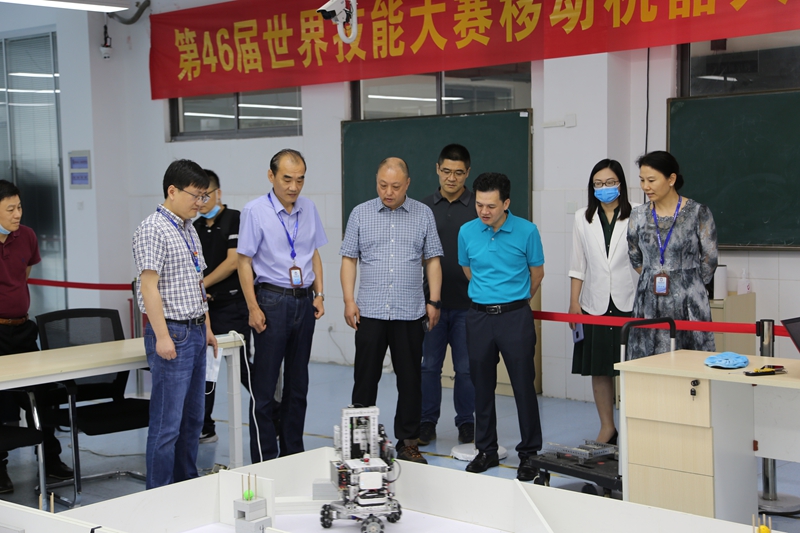 刘德宁局长一行视察了我院综合公共实训基地数控实训中心,参观了世赛移动机器人国家级集训基地、水处理技术国家级集训基地和商品展示技术江苏省集训基地,他对我院大力发展环境保护相关专业表示充分认同,对重点打造工业机器人和移动机器人技术专业、培养高技能复合型人才给予了高度评价。