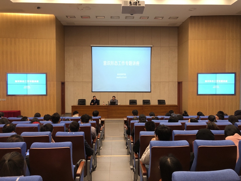 11月13日下午,中共南京市委党校李辉教授应邀到校开展了意识形态工作专题讲座,集中学习意识形态工作。讲座由副院长金卫卫主持,院领导、全体中层干部、行政工作人员、思政课教师、各系部学管和教管等参加学习。