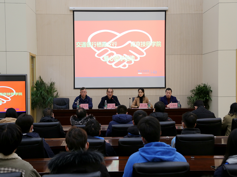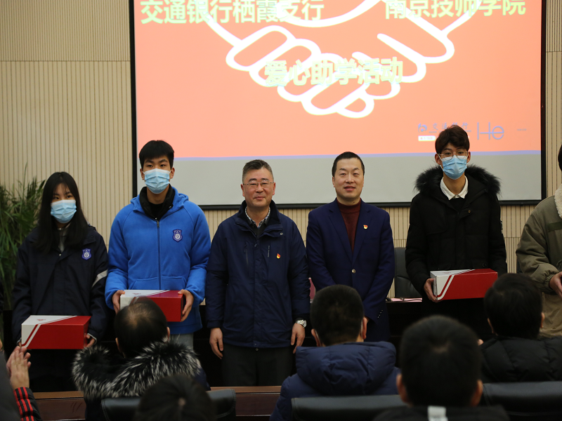 2020年12月24日上午,交通银行栖霞支行吕莹副行长、王道鸿副行长一行五人莅临我院,参加爱心助学活动。南京技师学院侯放院长、金卫卫副院长和财务处、学工处、各系教工代表,以及获得爱心帮助的20名学生参加了本次助学活动。