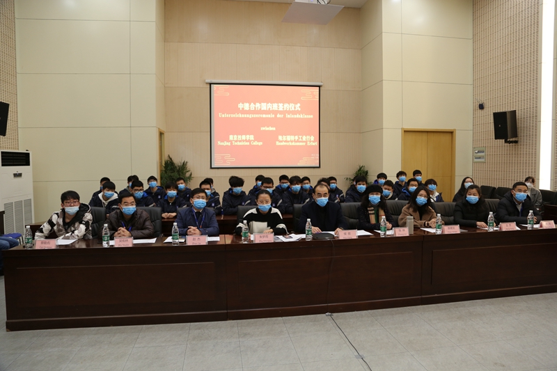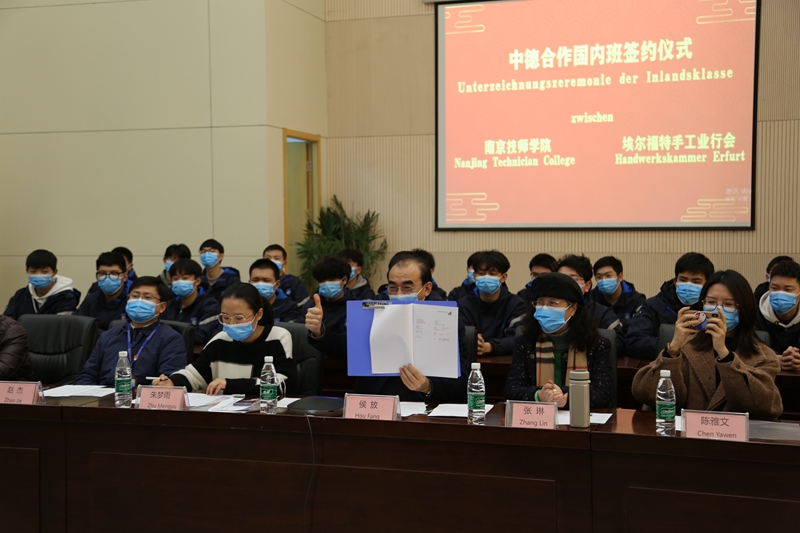 随后侯院长和Malcherek会长在合作协议书上签字盖章,并通过镜头相互展示,以此标志着南京技师学院与德国埃尔福特手工业行会中德合作国内班正式签约,学院首届中德合作国内班顺利开班。