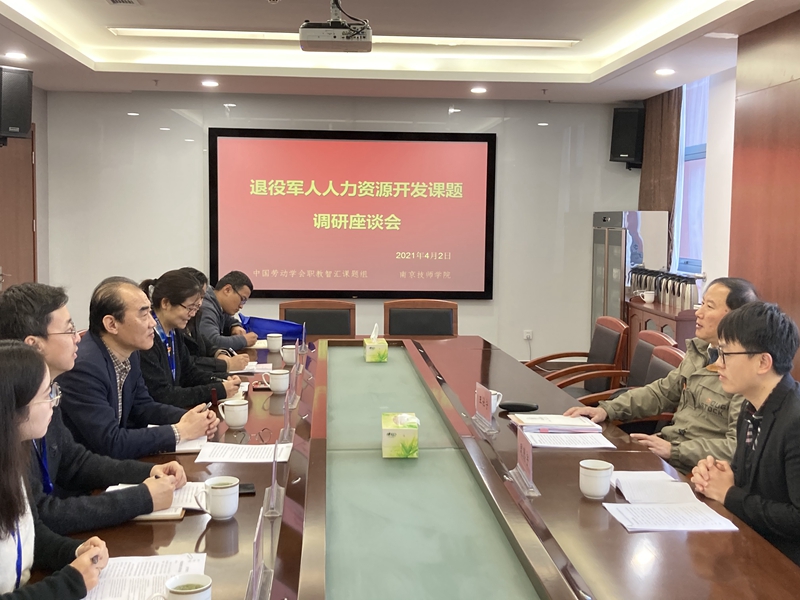 为推动退役军人人力资源开发课题研试按计划开展,4月2日,中国劳动学会职教智汇课题组退役军人培训项目组长王社宁、杭州华职教育科技有限公司副总经理周腾宇赴我院进行工作调研。学院院长侯放,副院长赵杰以及教务处、智能制造系、现代服务系相关领导及教师等课题组成员参加座谈会。