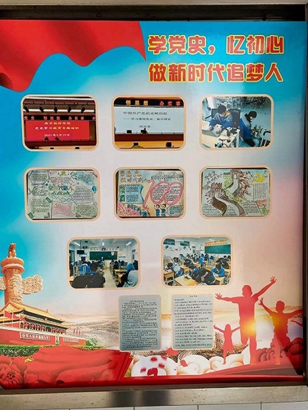 一是利用橱窗开设党史学习教育专栏,主要内容为党的发展简史、中国共产党历届会议时间、红色地标里的党史、“七一”建党节的由来、中国共产党的成立、中国共产党经历的几个重要时期等几大板块。其中包括我系举办的“学党史,做时代新人”手抄报杰出作品。这些让我系学生从中能学习党的精神,进一步激发对党对祖国的深厚感情和为党献身的精神。