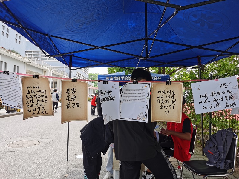 心灵治愈区通过学生书写自己的对好友、家人、学院的感恩与祝福,或是自己的心愿和梦想,来抒发自己情感,并激励他人。