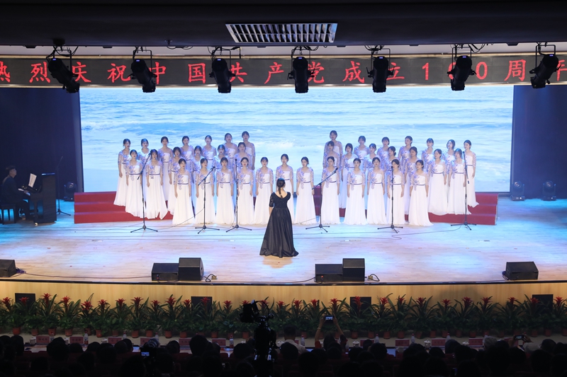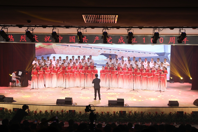 随后,全体人员共赏了师生倾力倾情打造的精彩节目。整场演出以庆祝建党100周年为主题,广大参演者通过大合唱、歌舞、情景剧、诗朗诵等不同艺术形式,将学党史的感悟融入创作,歌颂中国共产党成立百年来的光辉历程。演出在全场合唱《没有共产党就没有新中国》中圆满落幕。