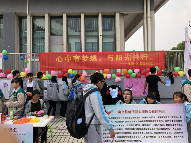 11月15日南京技师学院广场心理咨询活动在一食堂小广场举行,本次活动的主题为:心中有梦想,与阳光共行。