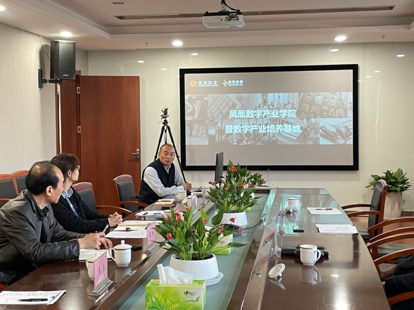 座谈会上项目负责人王社宁组长总结了技工院校产教融合、科教研结合的典型工作经验,传达和解读了中国职协关于加强全民数字技能教育和培训、落实《国务院办公厅关于深化产教融合的若干意见》的通知精神。威凤国际教育副总经理冯波具体介绍了凤凰数字产业学院和数字产业培养基地,从凤凰学院的发展历程、数字产业培养基地建设及产业项目介绍、数字产业学院数字内容生产工具集介绍三个维度向我院展示了凤凰卫视集团庞大且先进的数字产业群,表达了凤凰卫视威凤教育和中国职协为深度研究技工教育数字化改革发展和高质量人才培养路径的合作决心,说明双方共同设立“数智融教”科研资助专项,立项一批研究课题,联合各参与院校,开展技工教育数字化改革创新热点难点问题的研究的项目。