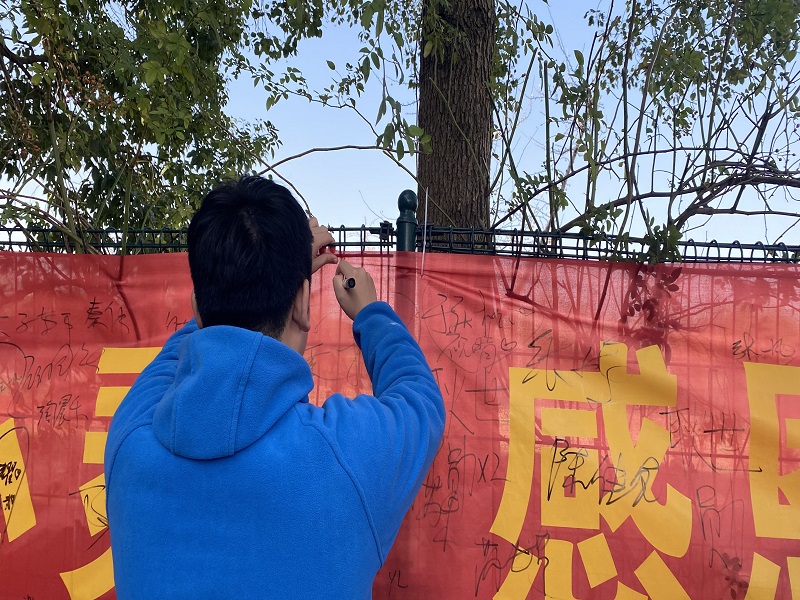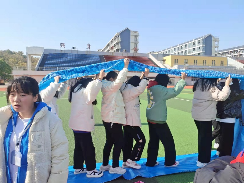 本次游戏主要有不倒森林、一呼到底、车轮滚滚、丢沙包、大风吹等活动,这些活动激发了学生参与的热情,学生们在游戏的过程中感受着紧张与开心的情绪。最后学生在横幅上签上自己的姓名,寓意着作出承诺会关注心灵,好好珍惜每一天。