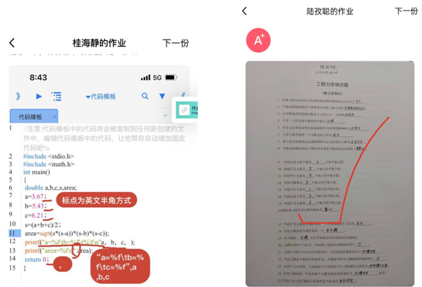老师们精心设计网课作业,督促同学们及时完成学习任务,认真批改反馈,强化跟进辅导,有效保障了线上课堂质量。