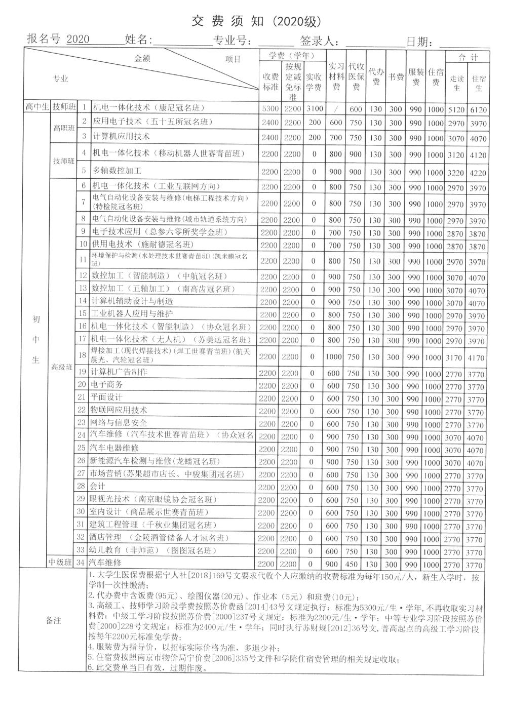 2020年新生交费须知