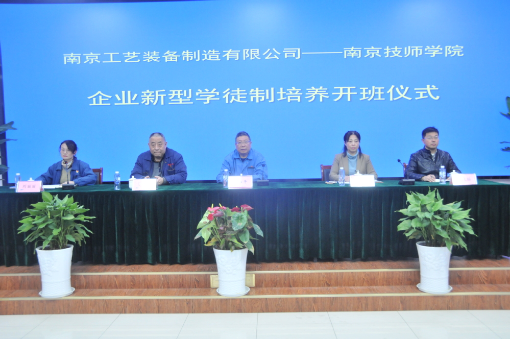 为进一步提升企业员工的综合技能水平、加快高技能人才队伍建设、助推企业高质量发展,根据江苏省人社部门企业新型学徒制培训相关文件精神,经过深入对接与周密安排,2023年4月6日下午,在南京工艺装备制造有限公司人力资源部部长主持下,南京工艺装备制造有限公司与南京技师学院在南京工艺装备制造有限公司多媒体培训教室圆满完成了开班仪式。