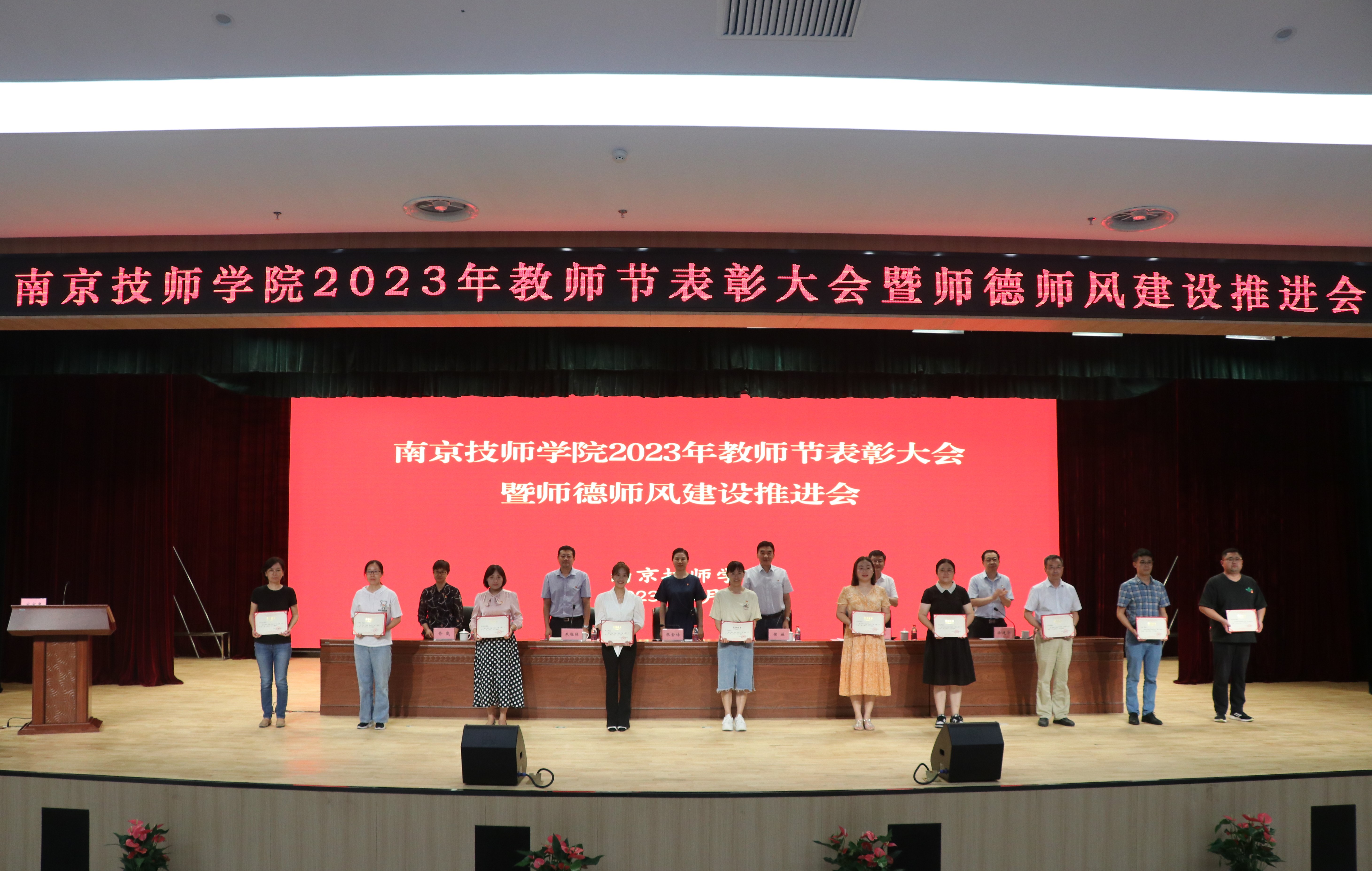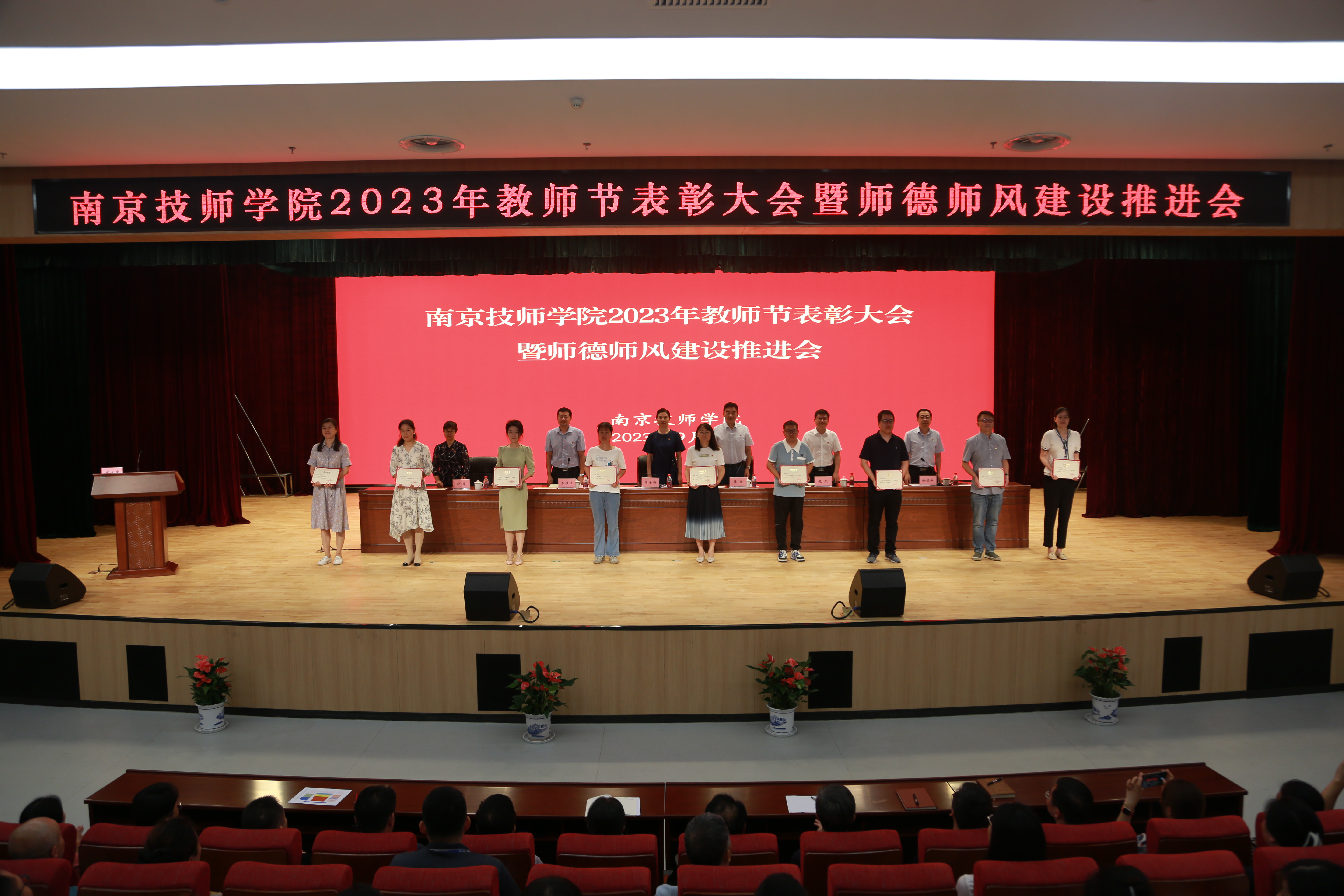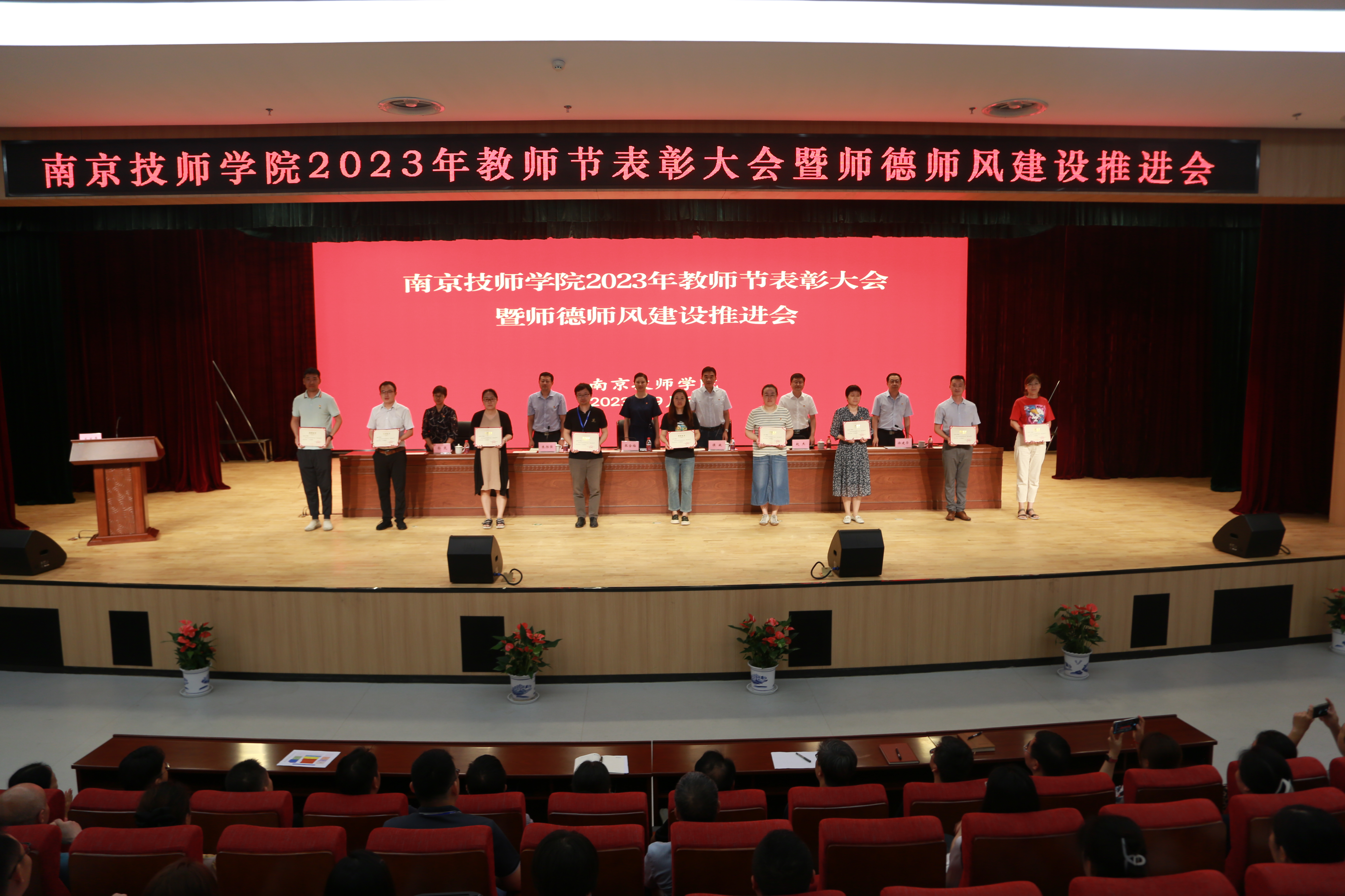 年年春华秋实,岁岁桃李芬芳。9月8日上午,南京技师学院隆重召开2023年度教师节表彰大会暨师德师风建设推进会。全体教职工在综合教学楼报告厅欢聚一堂,共同庆祝第39个教师节。全体领导班子成员参加大会,会议由副院长徐建华主持。