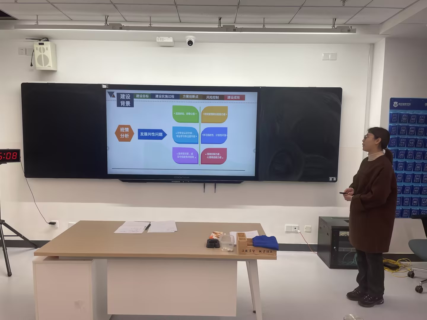 经过3月上旬系部初审,共有18名班主任选手脱颖而出参与学院评审,3月13日学工处组织评审专家对班级建设方案和主题班会文本进行评审,14日进行现场展示与答辩评审,俞岚副院长莅临现场指导。