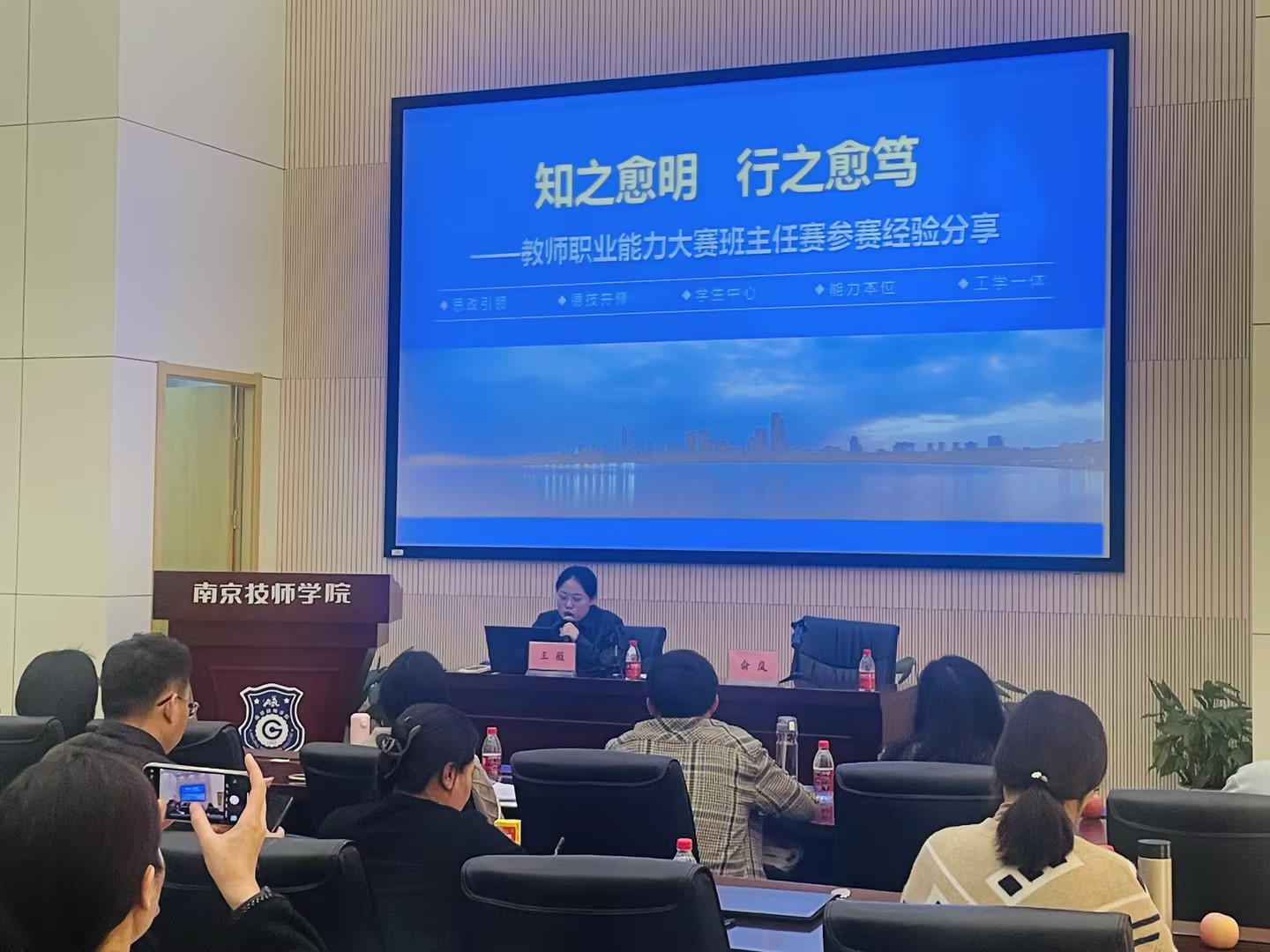 培训过程中,来自南京交通技师学院的专家王薇老师为教师们做了精彩培训,从大赛方案解读、班建方案设计、主题班会设计与现场答辩等方面进行了指导。王老师详细比较了市赛与国赛、省赛的规则差异,使参赛选手对比赛要求有了更加明确的了解,并结合自己丰富的实践经验和成功案例,为大家提供了许多宝贵的建议和方法。随后,王老师邀请去年省赛一等奖获得者刘杨艳老师为大家做了题为“知之愈明,行之愈笃”的经验分享,在座的教练和选手们纷纷表示受益匪浅。