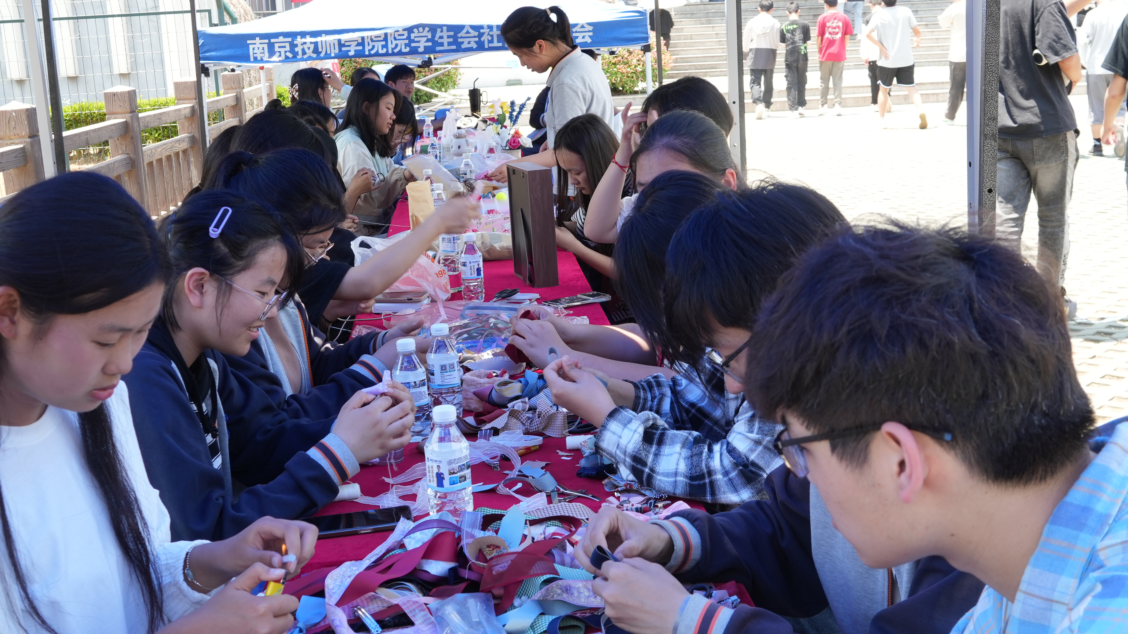 在此次活动中,院手工社团的社员们精心为大家准备了布料、针线、丝带、皱纹纸等材料,并手把手教大家制作香包、头花和皱纹纸花等。在社员们的精心指导下,参加活动的师生们都热情满满,纷纷动手制作出了富有个性和创意的作品,现场气氛十分热烈。