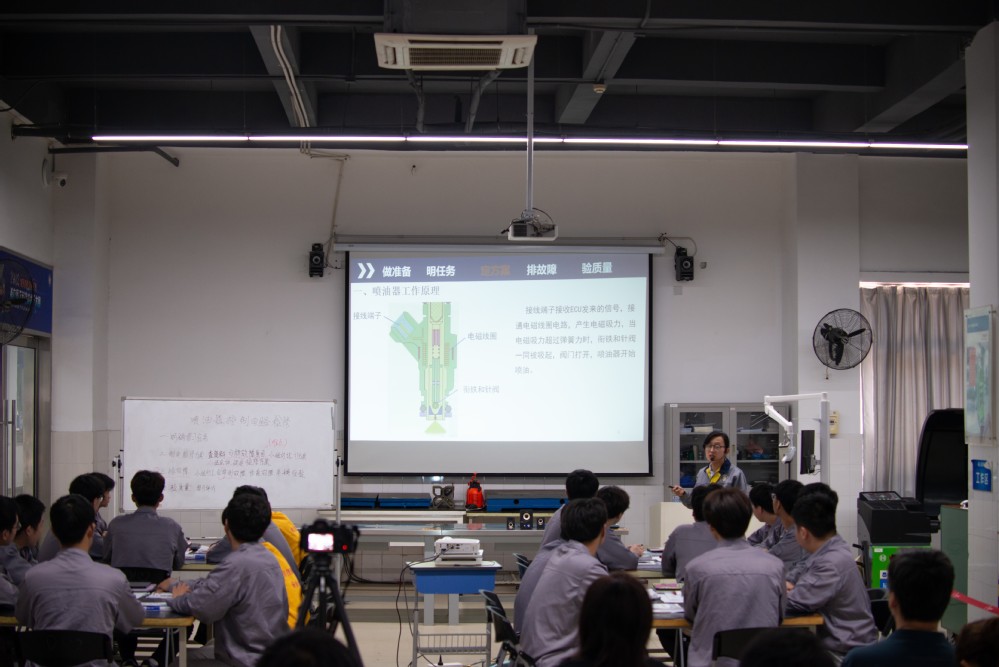 近日,学院汽车技术系杨姗老师在博世汽车实训中心D102开设了《喷油器控制电路检修》工学一体化校级公开课,教务处、汽车技术系及其他系部教师参加了听评课。