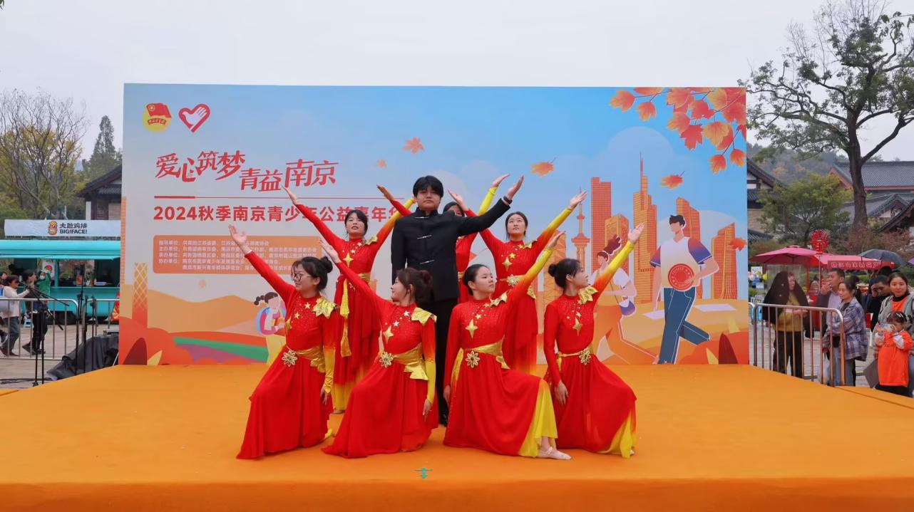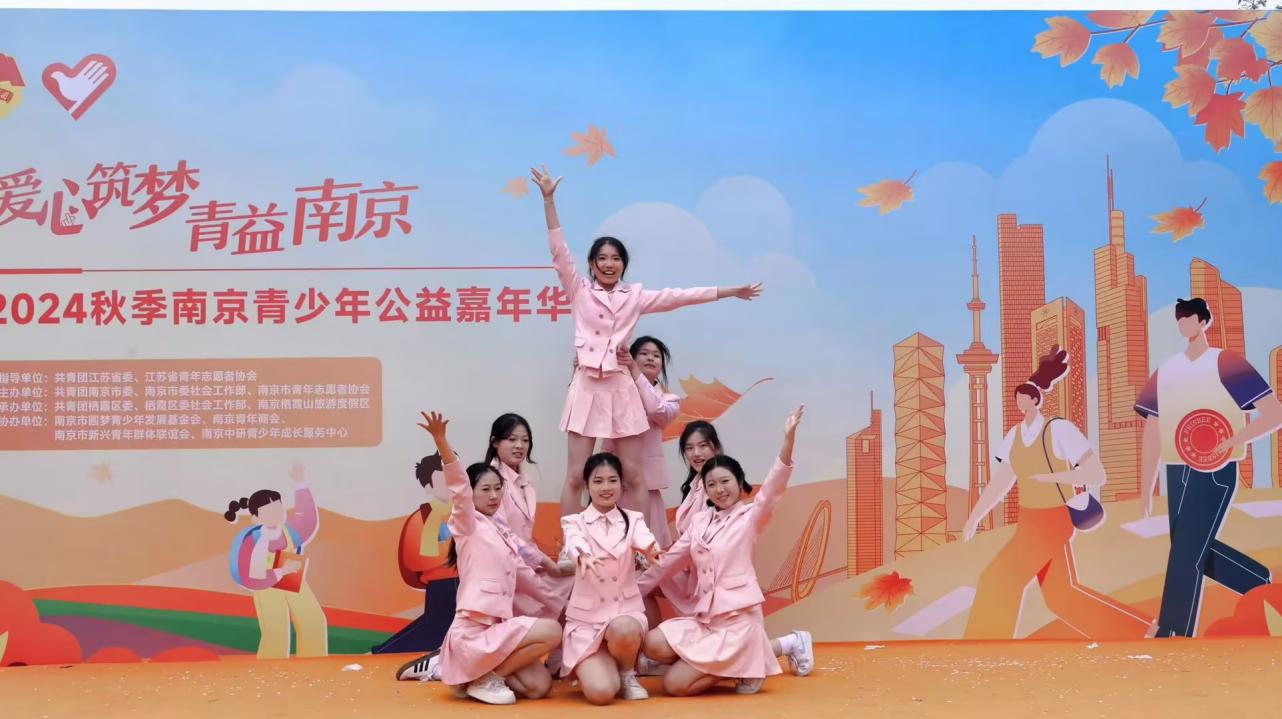 11月9日,由共青团江苏省委和江苏省青年志愿者协会指导,共青团南京市委、南京市委社会工作部和南京市青年志愿者协会主办的“爱心筑梦·青益南京”2024秋季南京青少年公益嘉年华活动在南京市栖霞古镇成功举办。学院青年学子受邀参加开幕式演出,启航舞蹈社和彩虹歌唱社精心编排两个节目《国家》、《快乐女孩》,为观众奉上了一场视听盛宴。