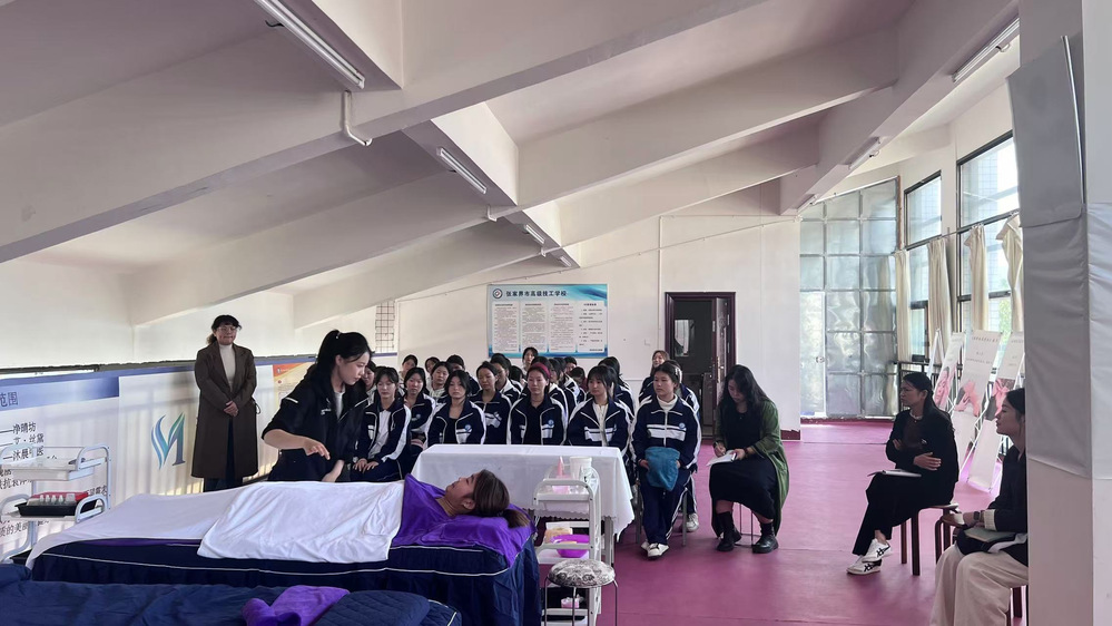 (我院世赛美容项目教练开展《面部护理》模块示范操作)