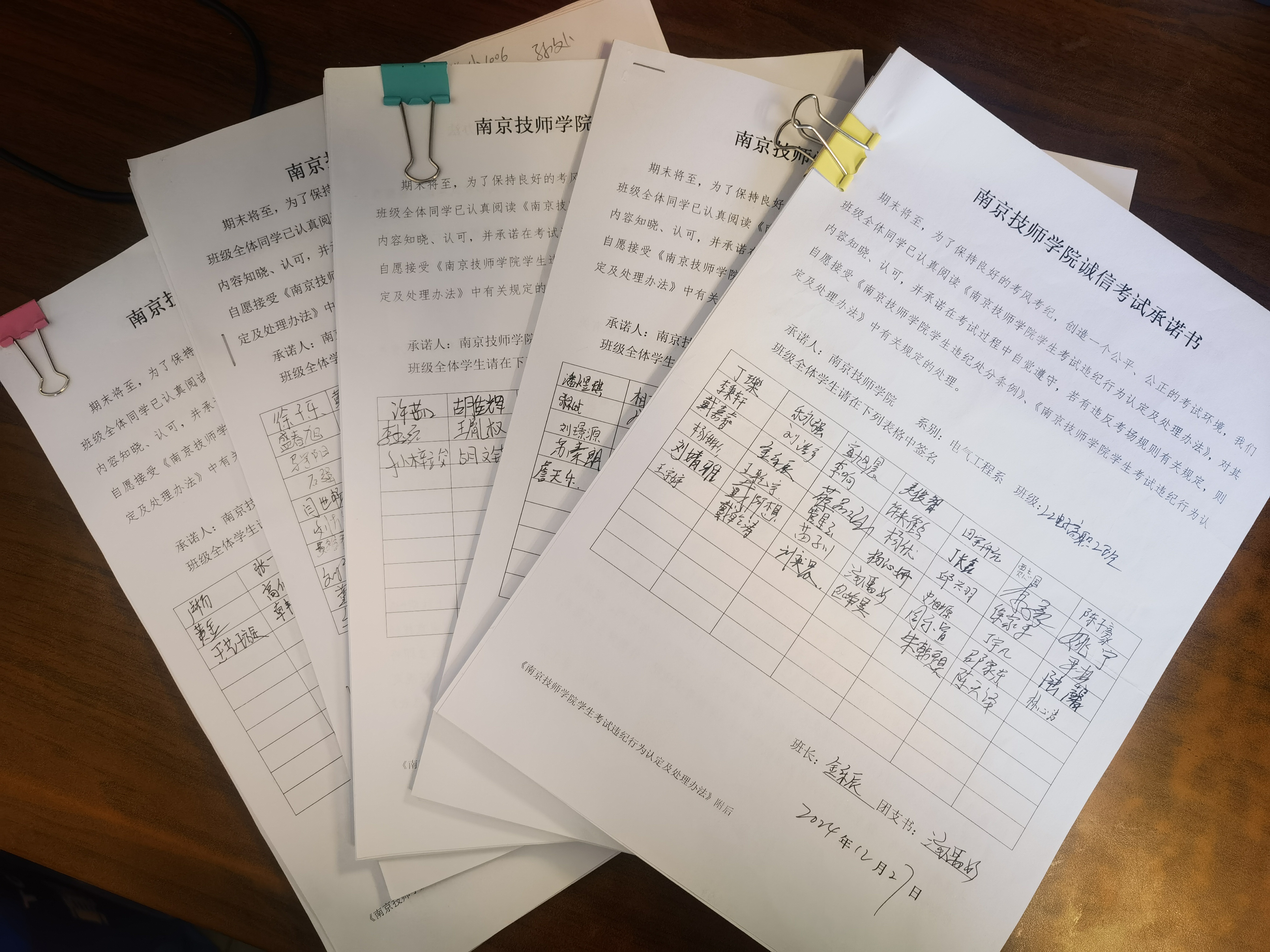 一是开展教室文化评比活动,以“践行社会主义核心价值观”为主题,营造良好的学习生活环境,展现当代学生的精神风貌,宣传诚信思想,营造诚信氛围。二是利用国旗下讲话,学生代表和学工处老师进行诚信主题教育讲话,号召全体师生守住诚信的真谛,让诚信之花永远绚丽、永远绽放。三是利用主题班会对学生进行传统美德及诚信教育,各班级以诚信考试为切入点,鼓励学生踊跃发言,寻找自身在诚信方面的不足,今后不断改进提升。四是召开获得奖助学金学生专题教育会议,号召每位受奖受助同学能真切感受到党和国家的“一片情”,真实用好奖助学金的“每分钱”,真心担负起青年的“一分责”。五是组织全体学生签订《南京技师学院诚信考试承诺书》,学习考试、考场规则,保持良好的考风考纪,创造公平、公正的考试环境。