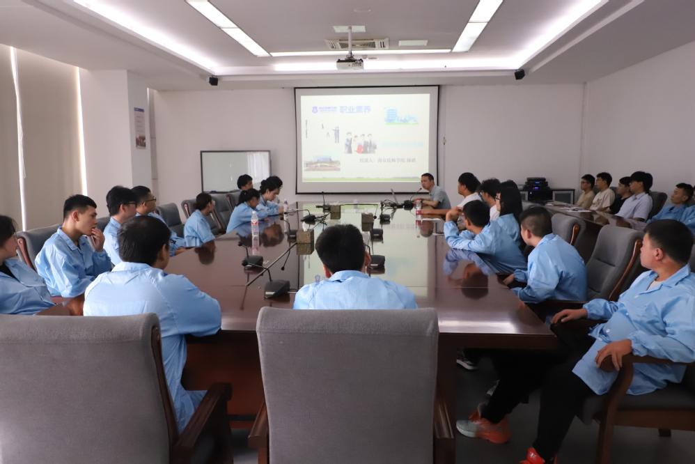 开班仪式上,学院招生就业处郑燕主任与公司总经理助理苗燕分别做了动员讲话。郑燕主任首先介绍了学院基本情况,并指出本次新型学徒制秉承“招工即招生、入企即入校、企校双师联合培养”的模式。她表示,学院将全力以赴做好教学组织与服务保障,确保培训质量,帮助学员切实提升技能水平,实现技能与岗位的双重收获。苗燕在致辞中强调,公司将与南京技师学院紧密合作,实现岗位练兵与素质提升有机结合。她提出,将借此机会采用“企校双制、工学一体”的方式,强化内部培训力量,优化课程体系,激发产教融合新动能,确保培养任务圆满完成,并鼓励学员珍惜机会、认真学习、学以致用。