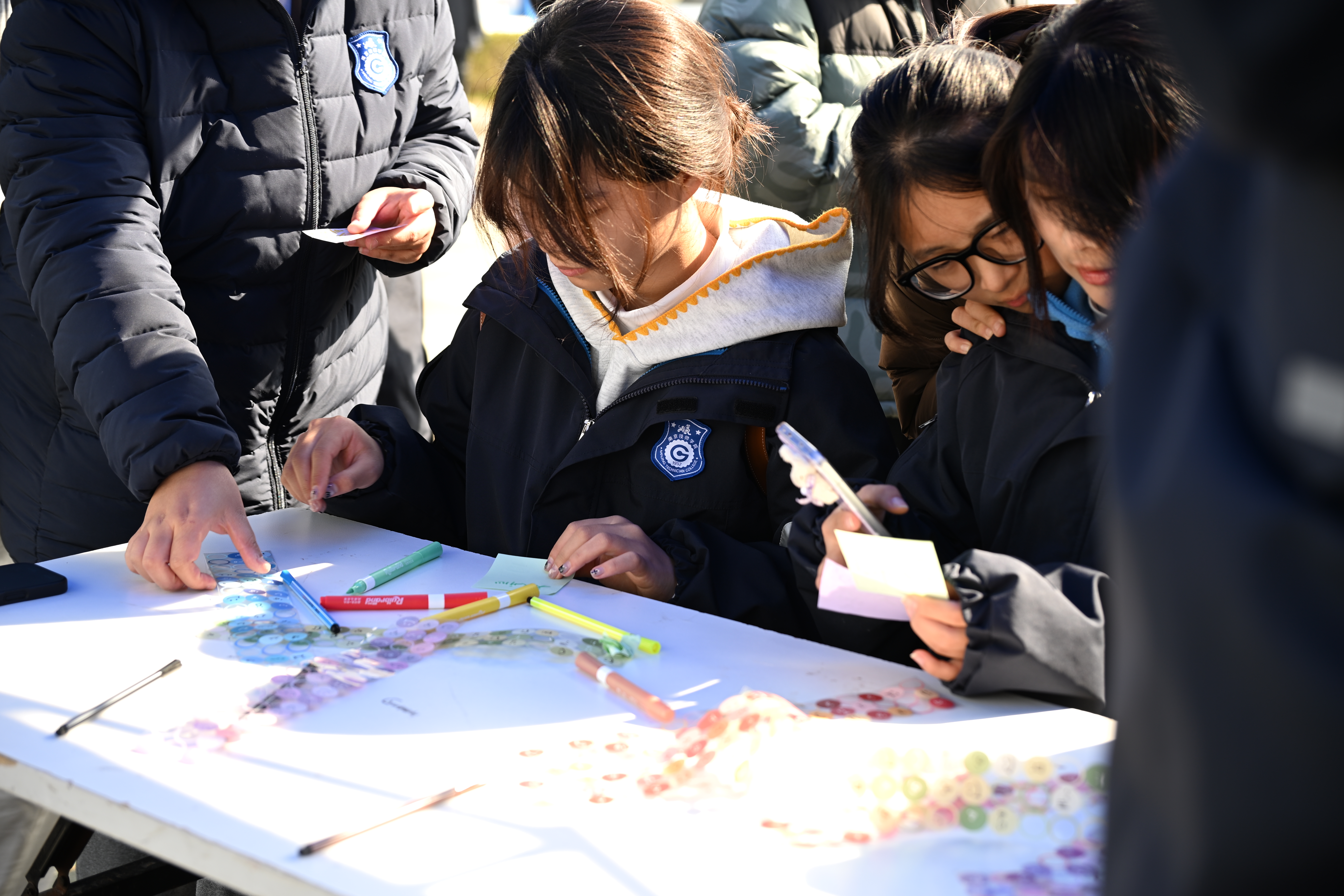 在“性格瓶子:我的特质盲盒”环节,参与的同学们结合“大方”“勇敢”“善良”等正向性格词条,将自身贴合的真实经历、行为习惯等内容书写在便签上,再折成心仪的形状,投入对应主题的性格玻璃罐中。在书写与投放的仪式感中,强化自我认同与自信心。