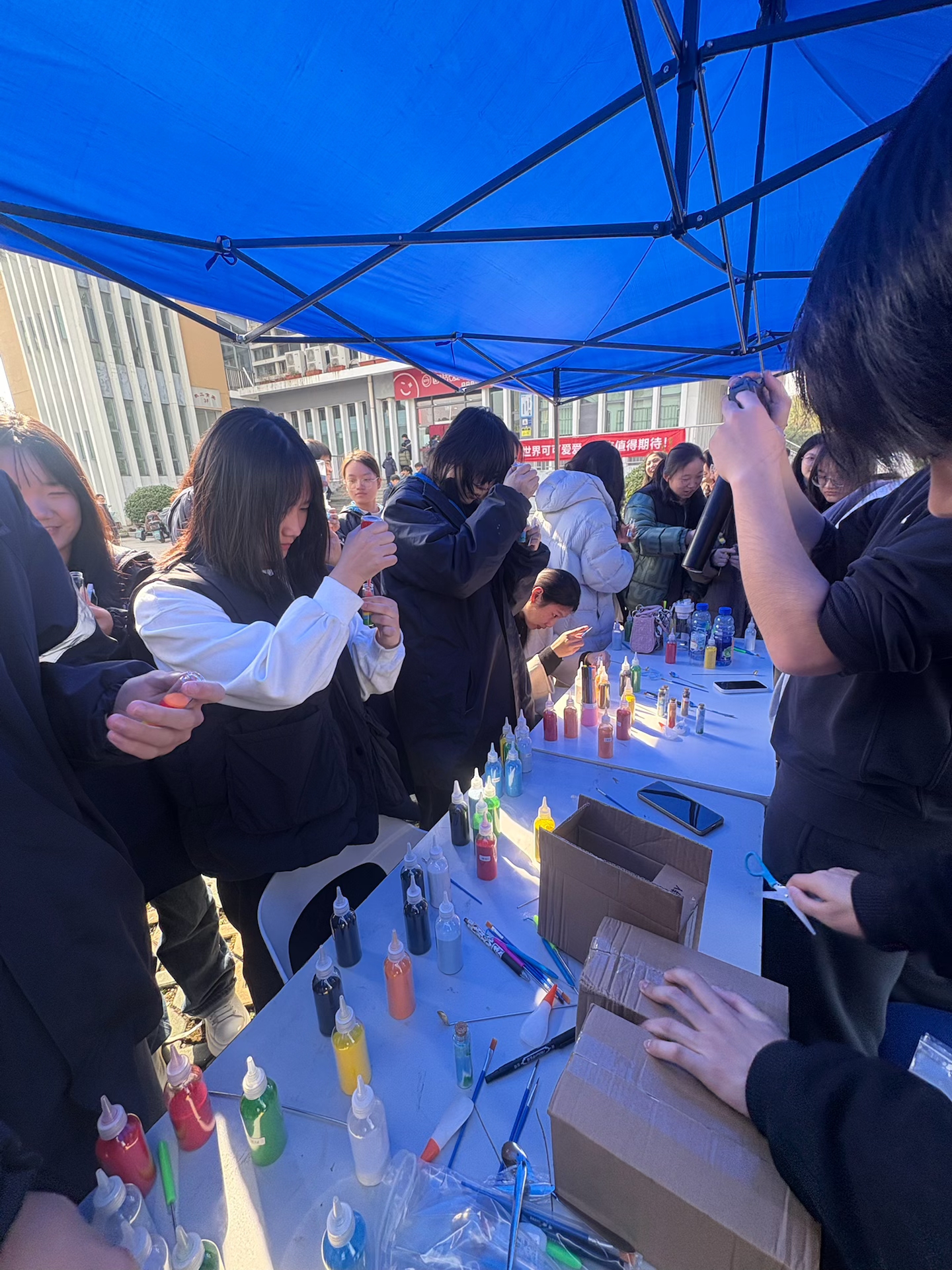 为引导学生接纳自我、发现自身独特价值,心语社于11月24日在食堂门口开展“拥抱自我,悦纳成长”自我探索主题心理活动,通过趣味化、沉浸式的互动形式,让参与者在轻松氛围中完成自我探索。活动通过“性格盲盒”“扭扭棒手作”“自制彩砂瓶子”“哈哈镜乐园”这四个趣味十足的项目,吸引了众多学生踊跃参与。