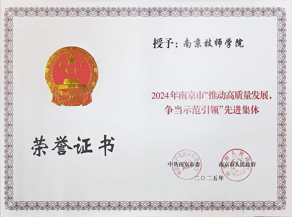 南京技师学院被南京市委、南京市人民政府授予“推动高质量发展,争当示范引领”先进集体称号