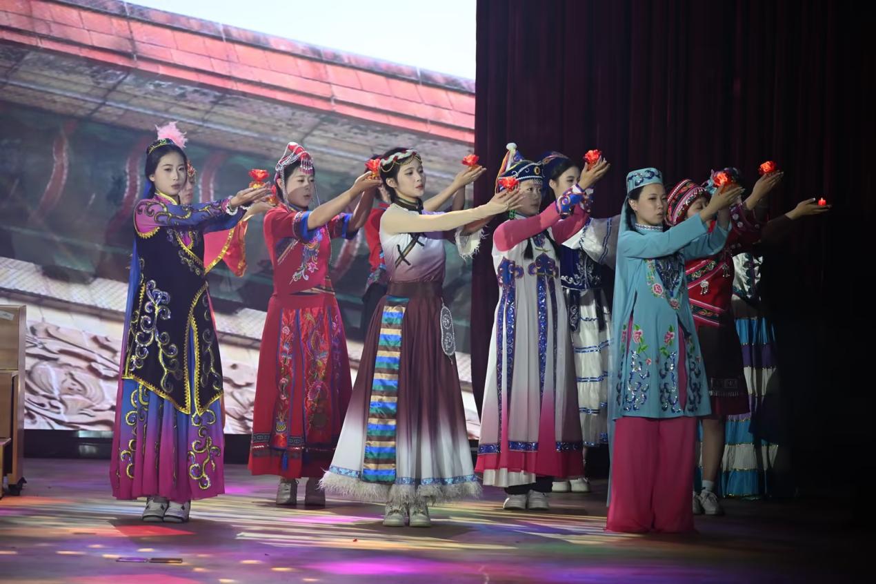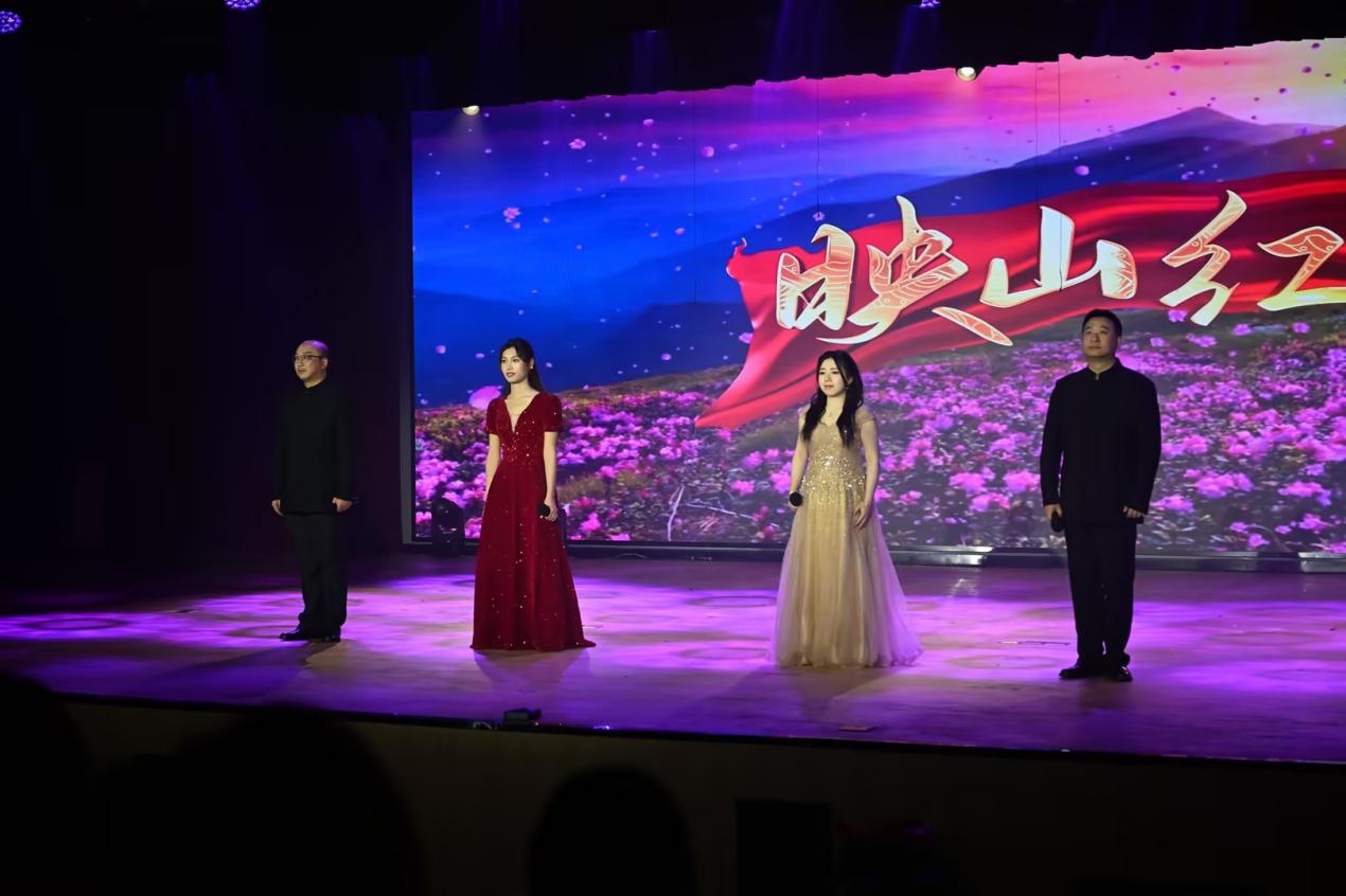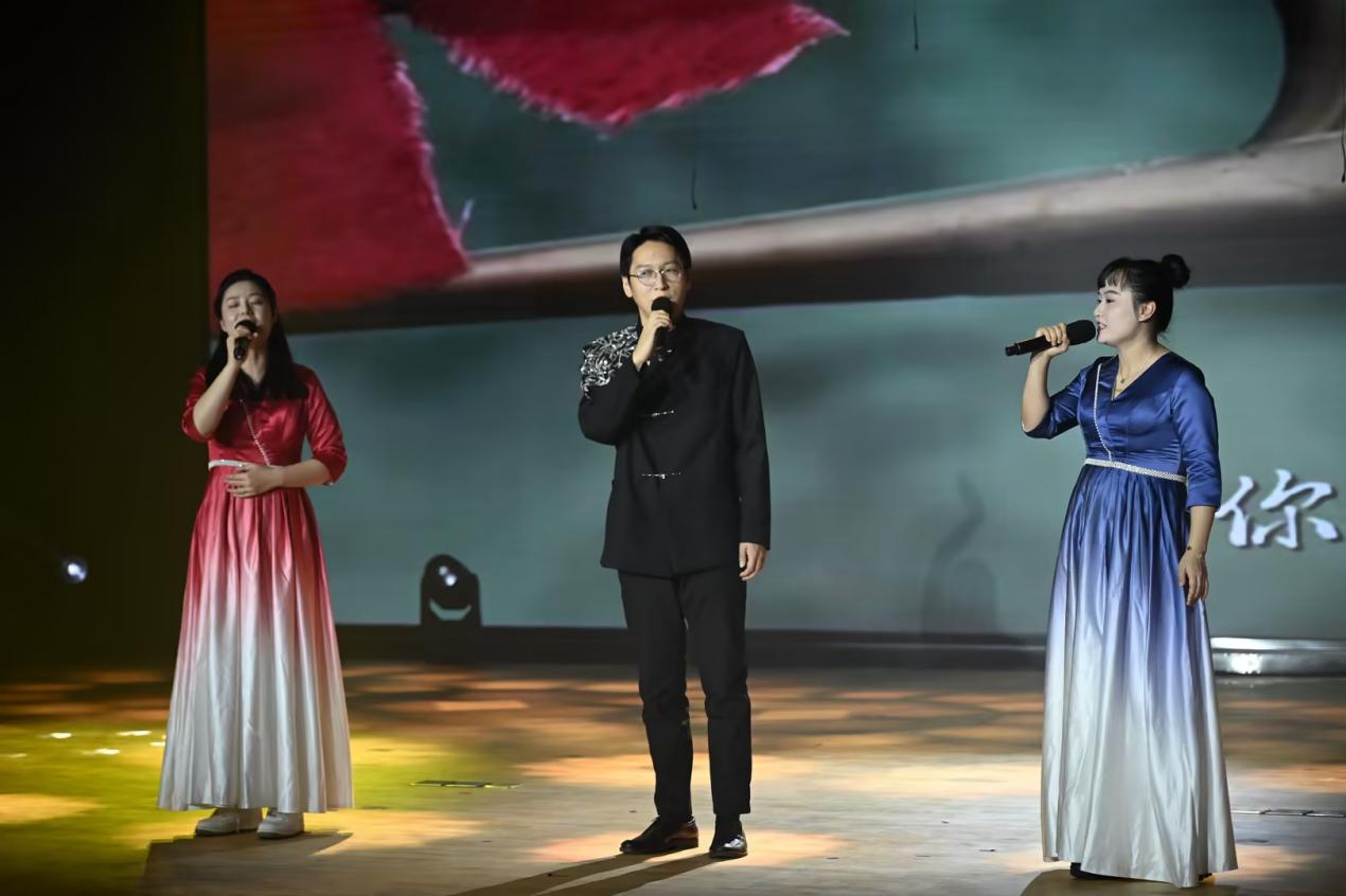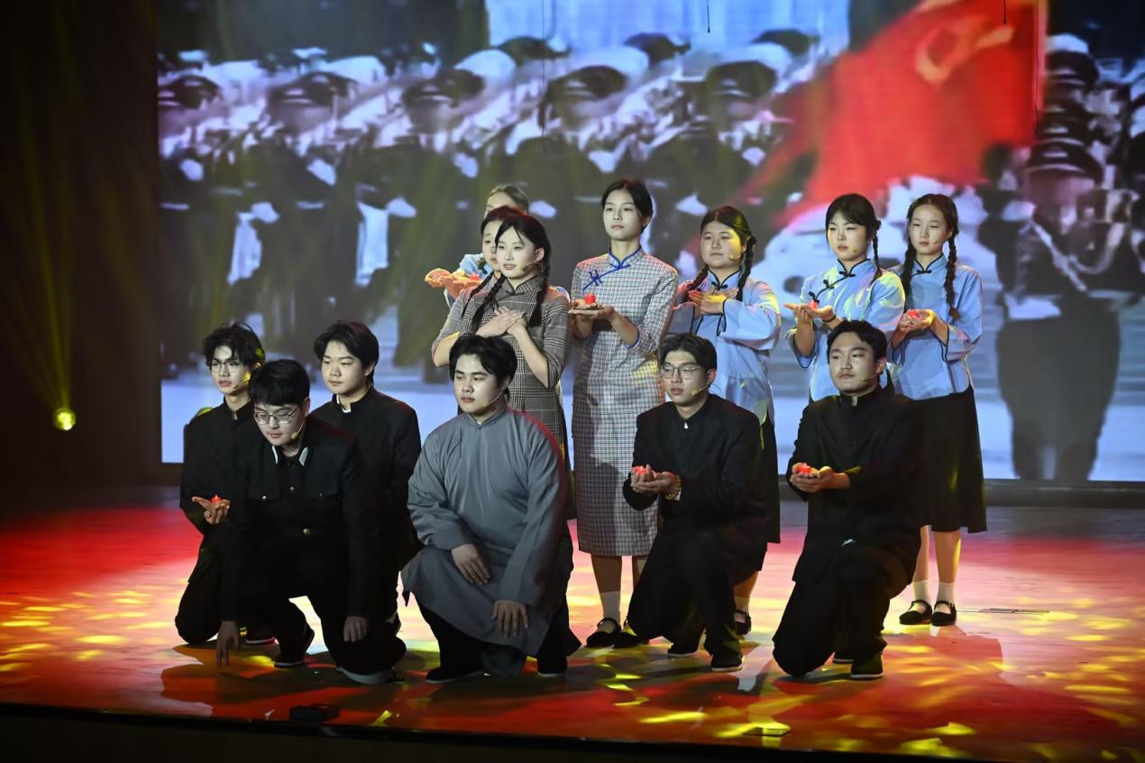 比赛中,学院各党支部和团总支共选送了12支队伍同台展示。党员教师们先后呈现了《中国人》《映山红》《南泥湾》《领航》等经典曲目,用真挚的情感、嘹亮的歌声诠释了党员的责任与担当;团员同学们以《红旗飘飘》《四渡赤水出奇兵》《我爱你中国》《天耀中华》等歌曲献礼,展现了新时代青年的昂扬风貌。参加表演的师生们精神饱满、编排精巧,舞台上灯光与旋律交融,歌声与掌声共鸣,一首首红歌穿越时空,既重现了救亡图存的峥嵘岁月,又唱响了新时代的奋进之歌。演出接近尾声,学院广播台的同学们还特别奉献了情景舞台剧《我有一束光》,以深情演绎传递信仰力量,赢得了全场阵阵掌声。