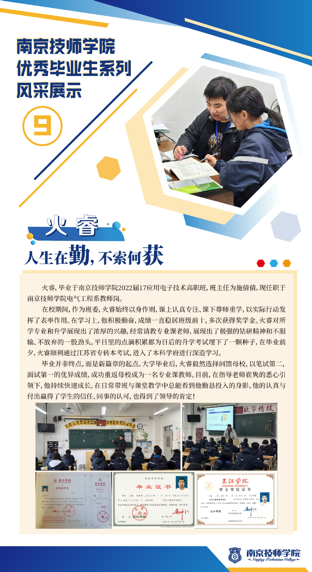 南京技师学院优秀毕业生系列风采展示⑨人生在勤 不索何获